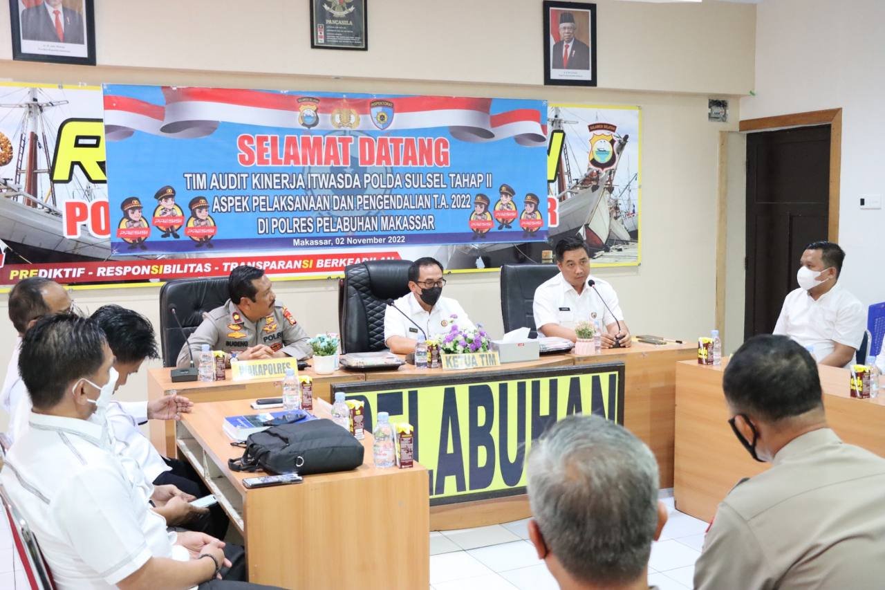 Tim Wasrik (Pengawasan dan Pemeriksaan) Audit Kinerja Irwasda Polda Sulsel Tahap II Tahun 2022 aspek pelaksanaan dan pengendalian melakukan kunker ke jajaran Polres Pelabuhan Makassar, Rabu (02/11/2022).