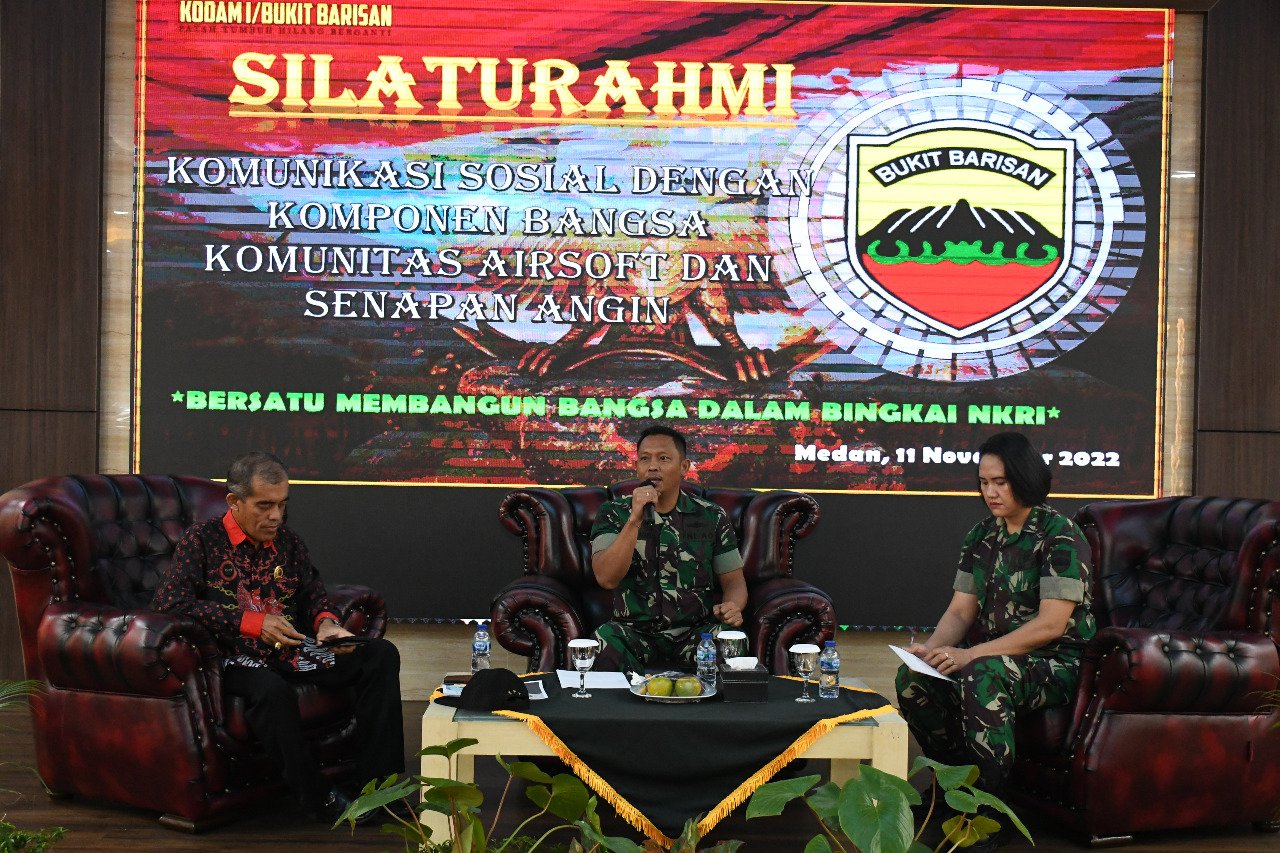 Dalam rangka membangun, mensinergikan dan sekaligus mewujudkan kekuatan ruang, alat dan ciptakan kondisi juang yang tangguh, pada masa kini dan masa yang akan datang dengan para komponen masyarakat di Sumatera Utara, maka Komando Daerah Militer I Bukit Barisan melalui Asisten Teritorial Kasdam I/BB telah melaksanakan kegiatan temu Silaturahmi Komunikasi Sosial dengan komponen bangsa bersama komunitas Airsoft dan Senapan Angin, di Gedung AH Nasution, Makodam I/BB, Jum'at (11/11/2022).