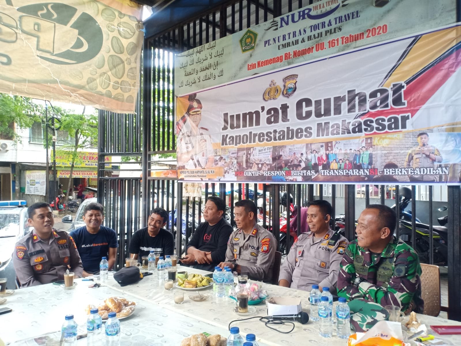 Kepolisian Sektor (Polsek) Mamajang, Polrestabes Makassar menggelar kegiatan pertemuan dengan Tokoh Adat, Tokoh Masyarakat, Tokoh Pemuda dan warga, bertempat di Warung Kopi (Warkop) Papa O, Kelurahan Karanganyar, Kecamatan Mamajang, Kota Makassar, Jumat (17/02/2023).