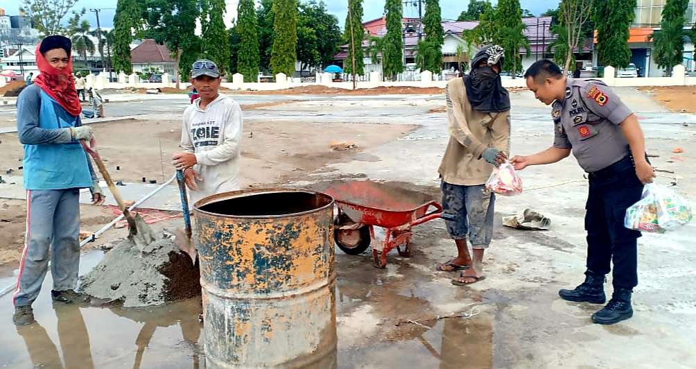 Pada umumnya anggota melakukan kunjungan ke beberapa lokasi yang ditempati warga prasejahtera namun berbeda yang dilakukan satuan kerja Bagren Polres Gowa dimana mereka menghampiri para buruh bangunan yang sejak pagi hingga sore tadi terus bekerja kemudian menyerahkan sedikit bantuan.