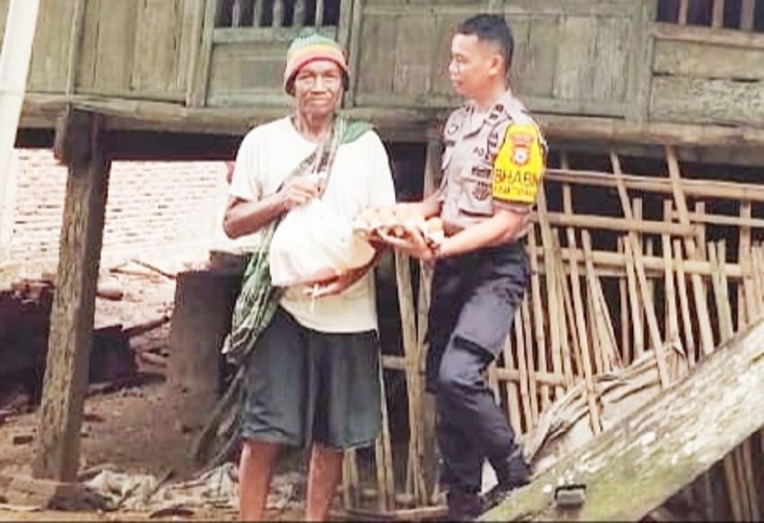 “Bantuan ini mungkin nilainya tidak seberapa, namun semoga dapat meringankan kebutuhan sehari-hari kakek,” kata Aiptu H Jainuddin.