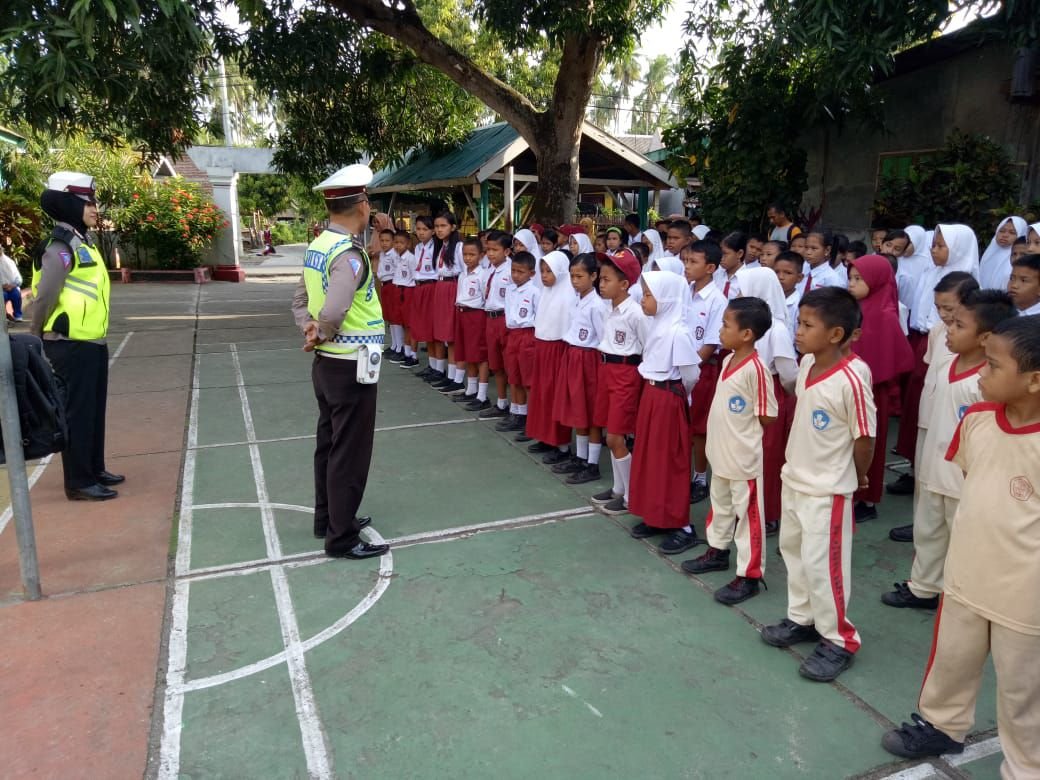 Usai apel pagi, Unit Dikyasa yang bantu unit laka Satlantas Polres Kepulauan Selayar, melaksanakan giat Police Goes to School di UPT SDI 112 Kepulauan Selayar.