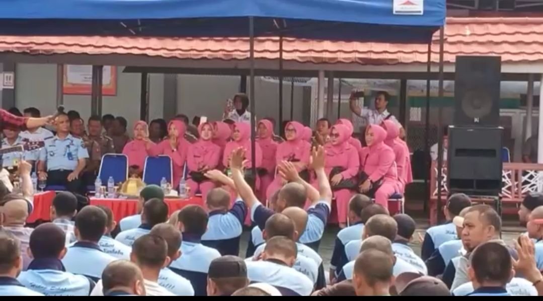 Dengan penuh antusias seluruh warga binaan bernyanyi kemudian mendengarkan sosialisasi yang disampaikan.