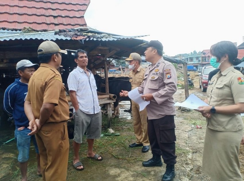 Untuk mengantisipasi penyebaran Penyakit Mulut dan Kuku (PMK) pada hewan ternak di Kabupaten Toraja Utara, Sidokkes Polres Toraja Utara (Torut) bersama Dinas Pertanian Bidang Peternakan turun langsung melakukan pengecekan hewan ke Pasar Bolu, Kecamatan Tallunglipu, Kabupaten Toraja Utara, Senin (23/05/2022).