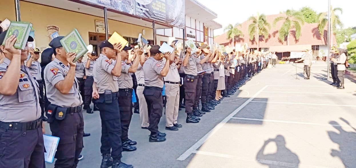 Saat Pelaksanaan Apel Pagi, Personil Polres Gowa Bawa Kitab Suci