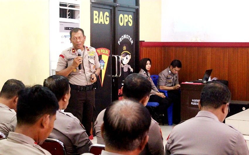 Jelang pengamanan Hari Natal 2019 dan Tahun Baru 2020, Polres Gowa menggelar latihan pra Operasi Lilin 2019 di Aula Endra Dharmalaksana, Kamis (19/12/2019) pukul 08.30 Wita.