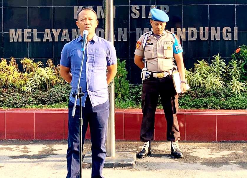 Kasat Reskrim Polres Gowa Iptu Muh. Rivai pimpin apel pagi di Kantor Polres Gowa, Selasa (10/12/2019).