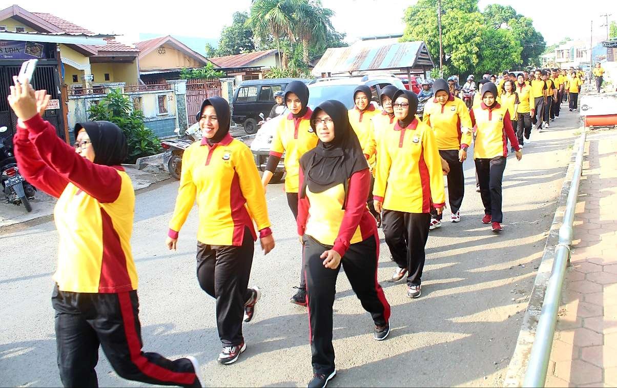Wujud antusias nampak terlihat jelas diraut wajah seluruh personil saat mengikuti lari pagi bersama yang diadakan Polres Gowa, pada Sabtu (07/12/2019) pagi ini.