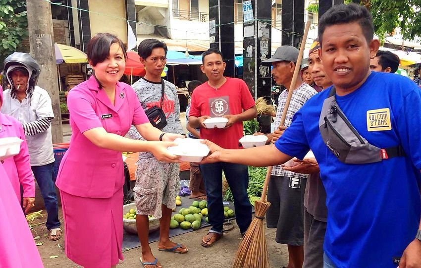 Wujud Kepedulian, Ketua Bhayangkari Cabang Gowa Salurkan Bantuan Kepada Tukang Bentor