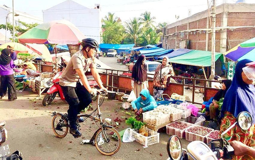 Bersepeda Menuju Pasar Minasa Maupa, Kapolres Gowa Sapa Masyarakat Sepanjang Jalan yang Dilaluinya