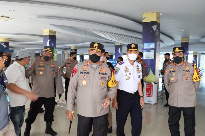 Kapolri Jenderal Listyo Sigit Prabowo memantau arus mudik lebaran melalui udara menggunakan helikopter, Jumat (29/04/2022). Dalam tinjauannya, Kapolri melihat jalur mudik dari Jakarta menuju timur.